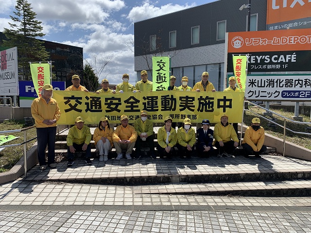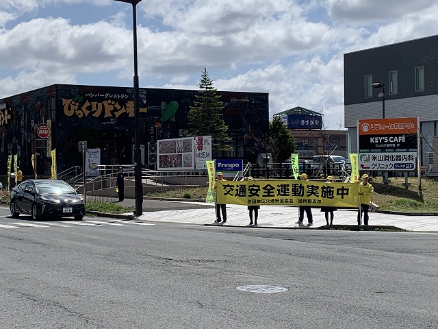 御所野町内から15名、秋田銀行職員2名、交通安全協会1名および御所野交番・東警察署3名の総勢21名でドライバーへ安全運転を呼びかけました。