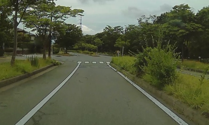 下の写真は総合公園入口の信号のない横断歩道を通過する際のドライブレコーダーからのものである。